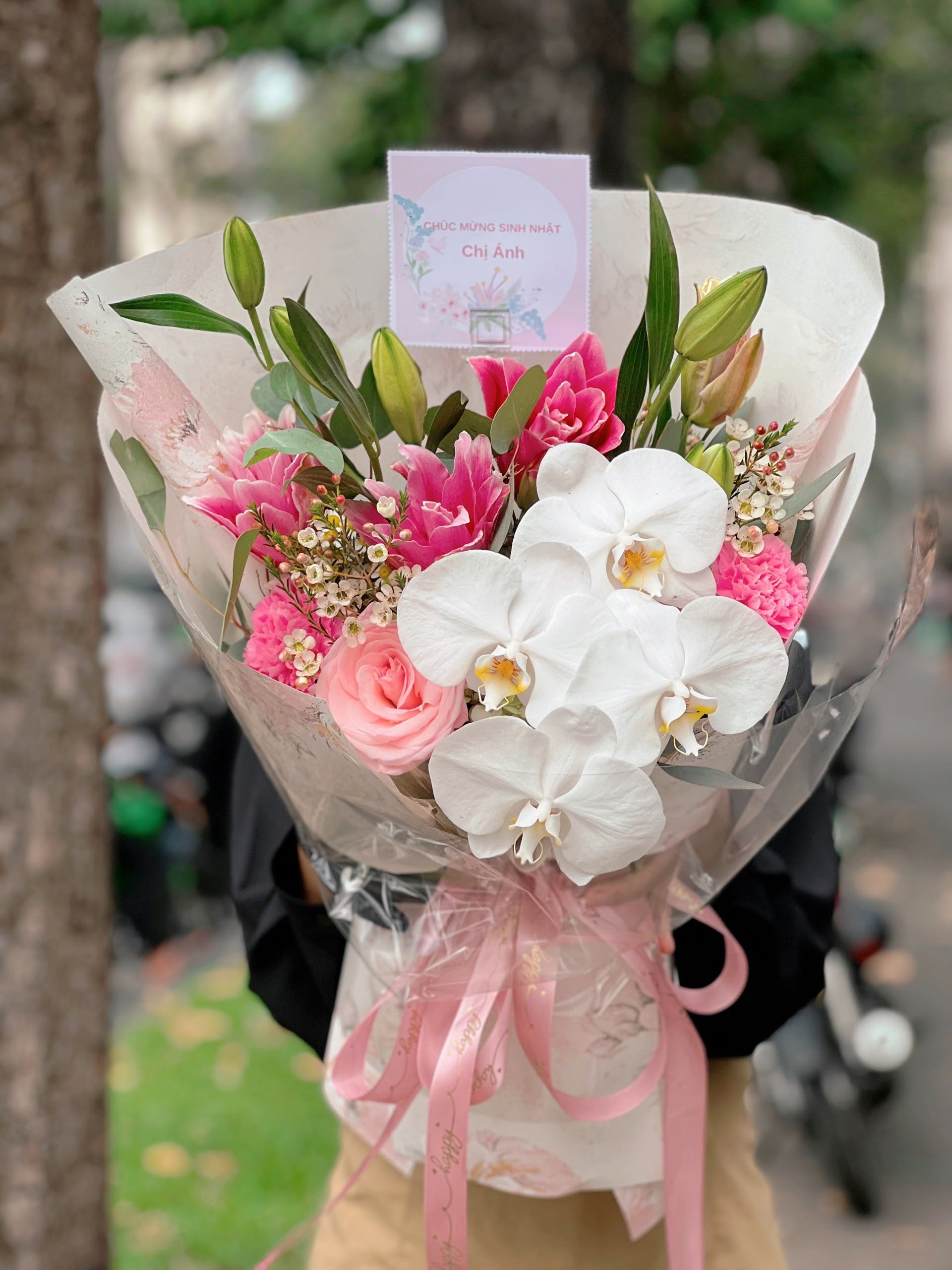 Lý do dễ vận chuyển: Thường được tặng dưới dạng chậu cây cảnh hoặc hộp hoa cố định. Khi được đóng gói cẩn thận (cố định cành hoa bằng nẹp mềm), Lan Hồ Điệp cực kỳ bền bỉ và không cần chăm sóc thường xuyên như hoa cắt cành. Đây là món quà lưu giữ được lâu.