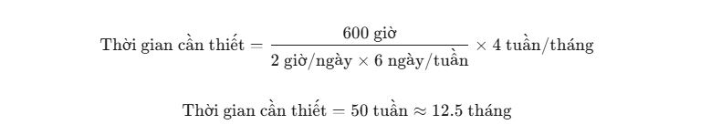 Thời gian đầu tư: Học 2 giờ mỗi ngày, 6 ngày/tuần.