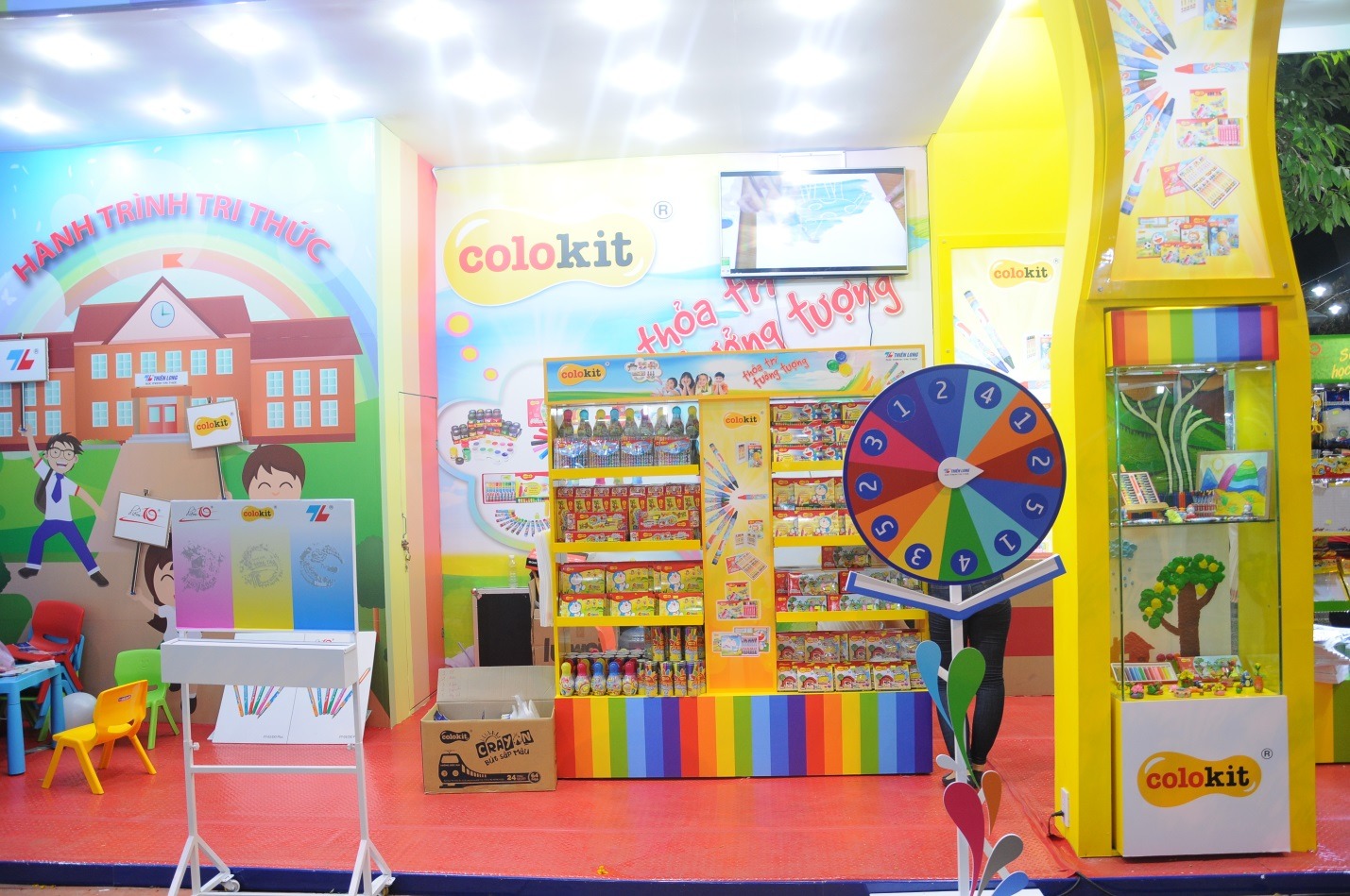 Màu sắc đồng bộ thương hiệu: Màu sắc gian hàng nên thống nhất với tông màu chủ đạo của thương hiệu để tạo ấn tượng lâu dài.