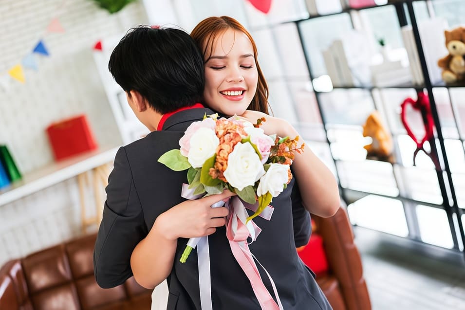Hoa luôn là lựa chọn kinh điển và không bao giờ lỗi thời trong các dịp đặc biệt của đời người. Bó hoa hồng đỏ truyền thống thể hiện tình yêu mãnh liệt, trong khi hoa tulip vàng mang ý nghĩa niềm vui và hy vọng cho tương lai. Bạn cũng có thể chọn hoa cẩm tú cầu xanh tượng trưng cho sự chân thành và lòng biết ơn sâu sắc mà bạn dành cho cô ấy.